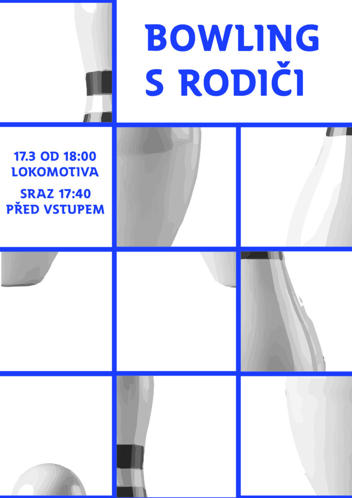 doufáme, že Vám stejně jako nám chybí společné akce, proto jsme se rozhodli, že uspořádáme již tradiční Bowling s rodiči, který se uskuteční dne 17. 3., a to od 18:00 v Lokomotivě. Sraz bude v 17:40 před vchodem na bowling. Budeme se na Vás všechny těšit, pokud byste měli potíže s hlídáním Vašich dětí, tak je samozřejmě vezměte s sebou 🙂
