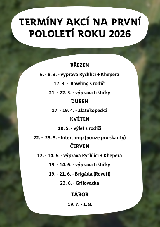 níže posíláme seznam akcí na druhé pololetí, zažijeme nejen akce po družinách, oddílu, ale také například akci na téma Divoký západ, která bude pro celé středisko. Rovněž jsme si připravili dvě akce přímo pro Vás, pro rodiče. Samozřejmostí zůstává i červnová grilovačka.