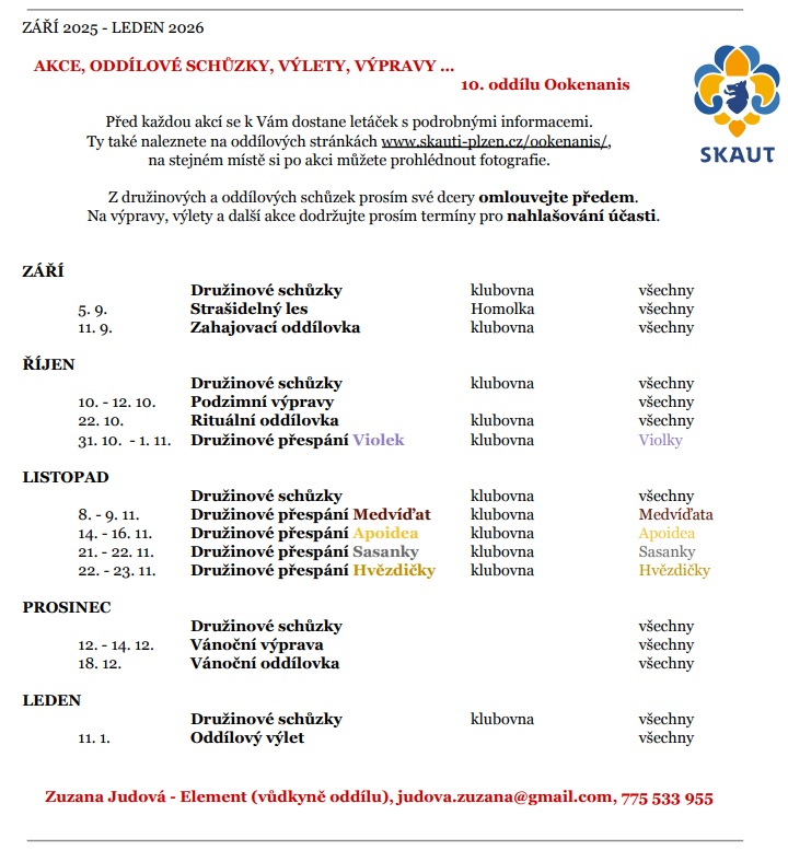Rubriky Ookenanis Soupis akcí Autor příspěvku Autor: Červík Datum příspěvku 3. 10. 2025 Zde najdete soupis akcí září 2025 – leden 2026 ← Závěrečná oddílovka → Říjnové výpravy